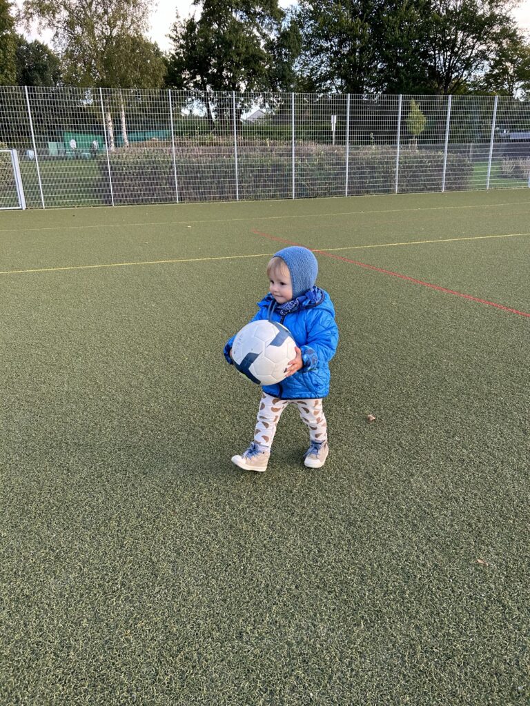Am Nachmittag wurde der gleich auf dem Fußballplatz ausprobiert. Zusammen auch mit Tjark. Mika ist ganz viel rumgeflitzt und kann voll gut mit dem Ball am Fuß laufen.