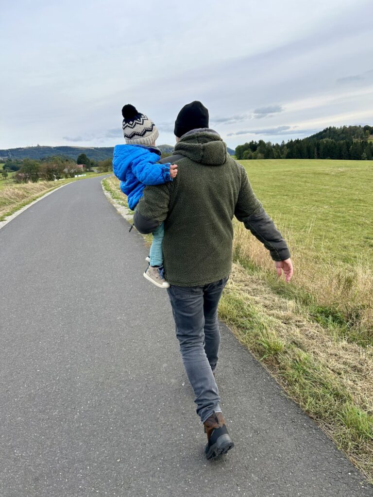 Nach dem Schläfchen (war eher ein ausgewachsener Schlaf) sind Mama, Mika und Papa in die Rhön gefahren und zum Fuldaer Haus gegangen.