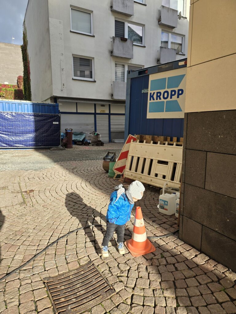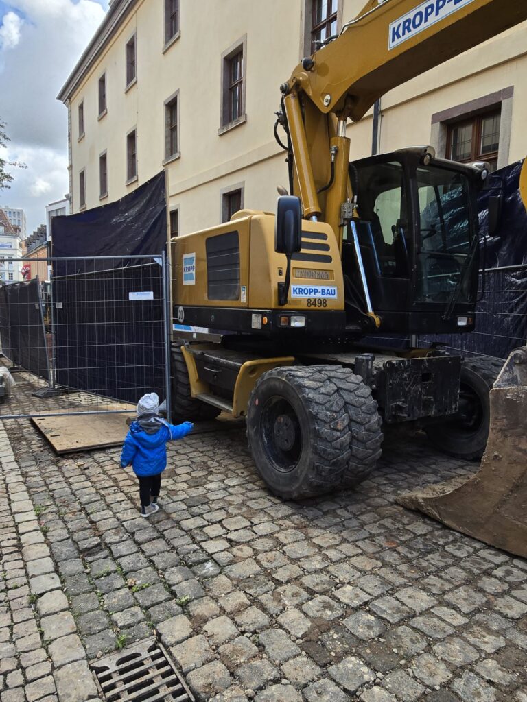 Nachmittags sind Mika und Papa in die Stadt gefahren und haben einen Kuchen gegessen. Auf dem Weg durch die Stadt war Mika danach total von den Baufahrzeugen fasziniert.