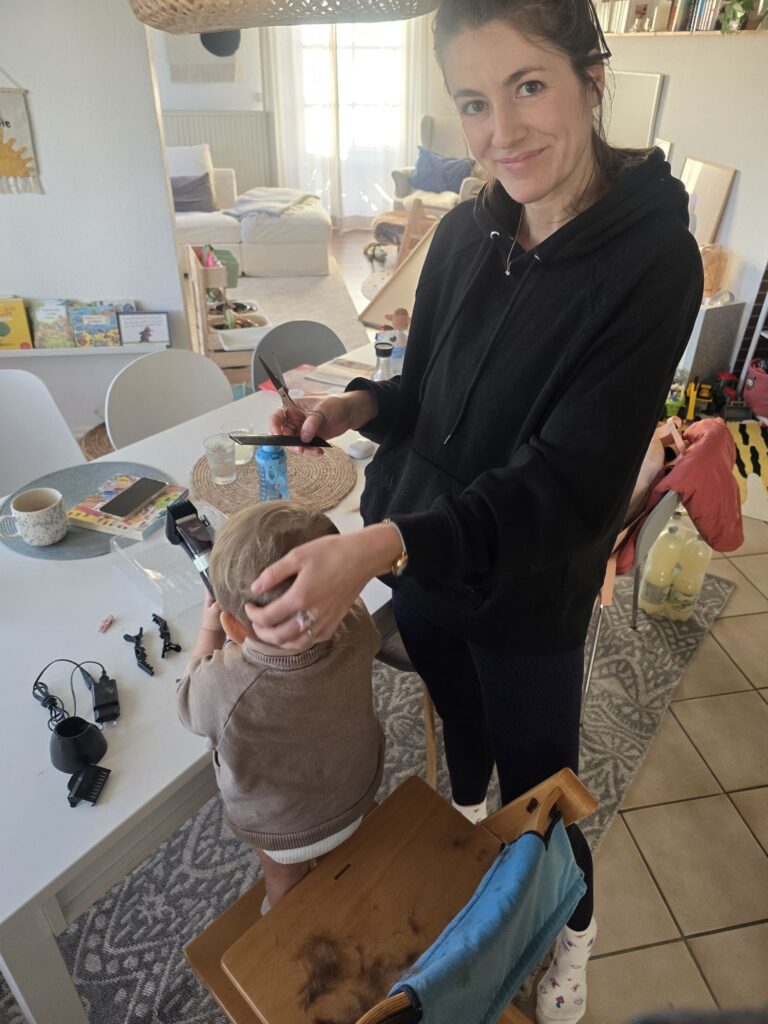 Nachmittags hat Mama dann Mika eine Kurzhaarfrisur verpasst.