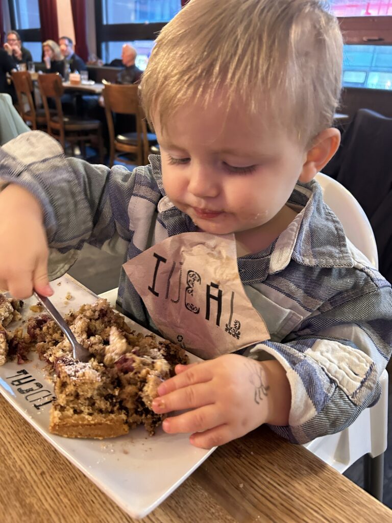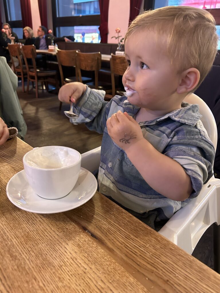 Kurz gespielt, dann ging es flux in den Kindergarten. Vorher aber noch Papa Tschüss sagen, der ist für’s Wochenende in Görlitz unterwegs. Im Kindergarten war ganz schöne Spielezeit und eine riesige Freude als Oma mit zum Abholen kam.