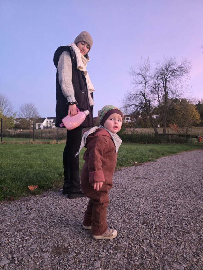 Am Nachmittag kam Papa dann mit dem Zug wieder an. Mika und Mama haben ihn direkt am Zug abgeholt. Zu Hause war kurz Ausruhzeit und dann haben alle drei nochmal eine Runde in der grünen Lunge gedreht.