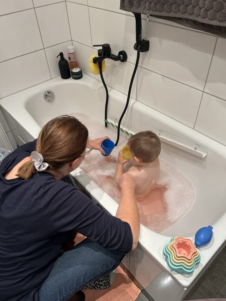 Abends hat Oma Mika noch gebadet, dann ging es pünktlich ins Bett. Schlaf schön, kleiner Mäusekönig.