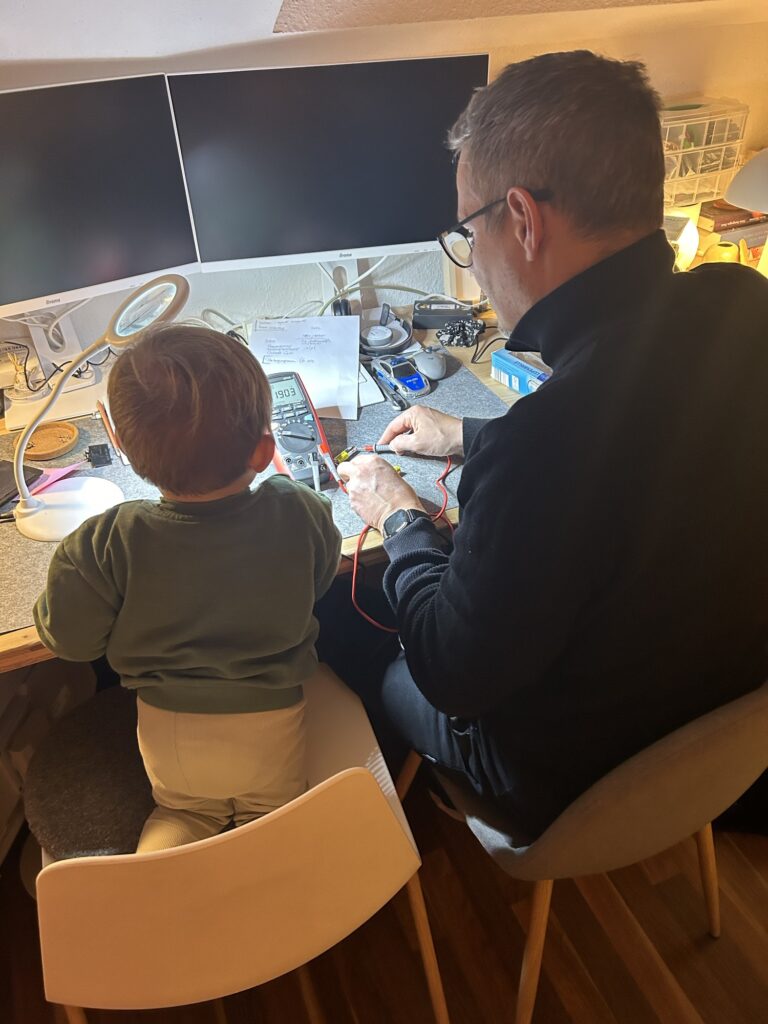 Abends haben Papa und Mika dann noch das Polizeiauto vom Flohmarkt repariert und alle großen Kinder waren da.