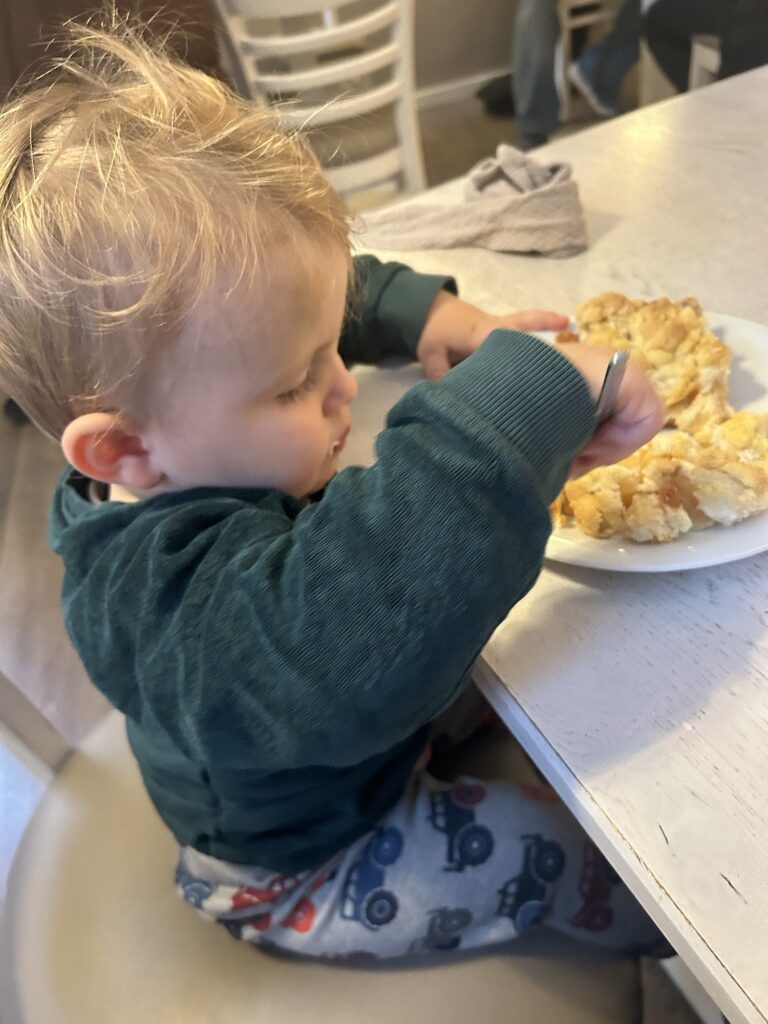 Mika und Mama haben sich einen gemütlichen Vormittag gemacht, allerdings war die Stimmung da schon immer ein bisschen kippelig. Nach dem Mittagsschlaf war es leider nicht richtig besser, deswegen sind Mika und Mama raus und mit dem Kinderwagen in die Stadt zum Kuchen essen. Das hat alles gut geklappt und Mika hat im Café Glück ganz lieb gespielt. Der Rückweg war dann aber ganz schwer mit viel Weinen und Schreien. Zuhause wurde dann noch eine Runde mit dem neuen Auto gefahren und dann ging es bald ganz jammerig ins Bett.