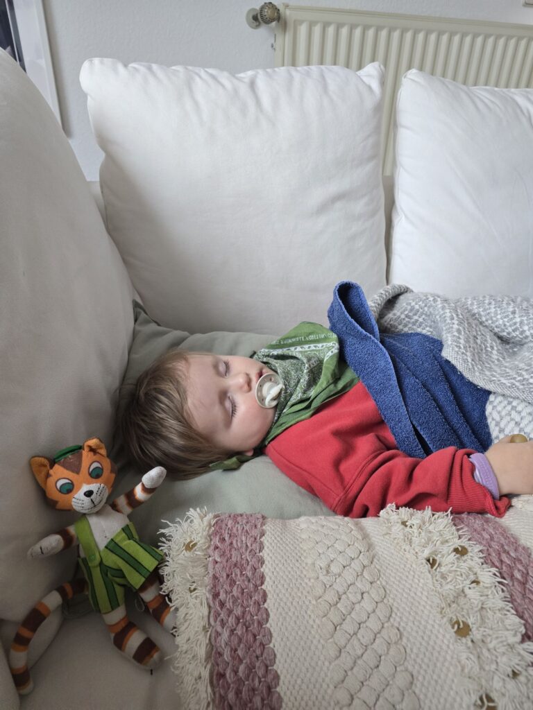 Wieder zu Hause hat Mama sich dann bald auf den Weg zu Oma gemacht. Mika ist bei Papa auf dem Schoß eingeschlafen… eigentlich wollten die beiden mit dem Parkhaus spielen.