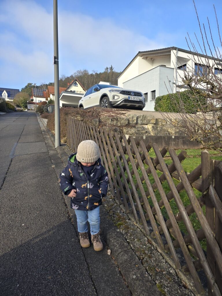 Die Morgenroutine war ganz easypeasy. Mika war voll gut drauf. Nach dem Fertigmachen ging es dumdidum in den Kindergarten.