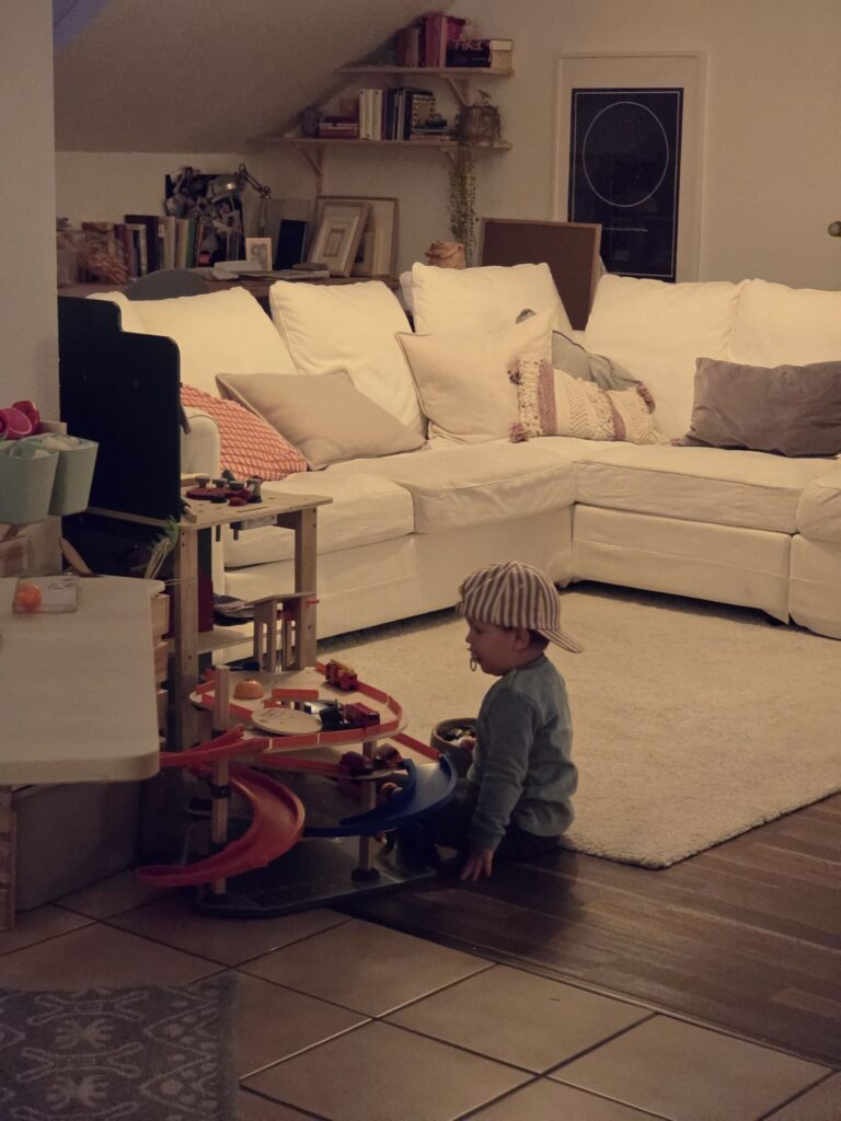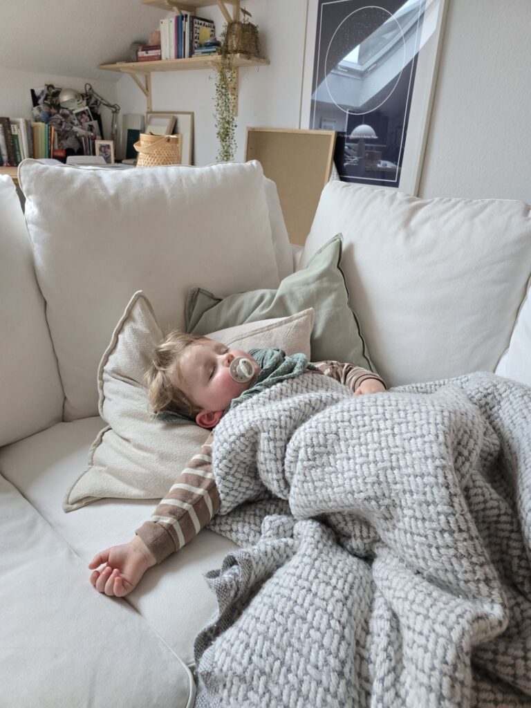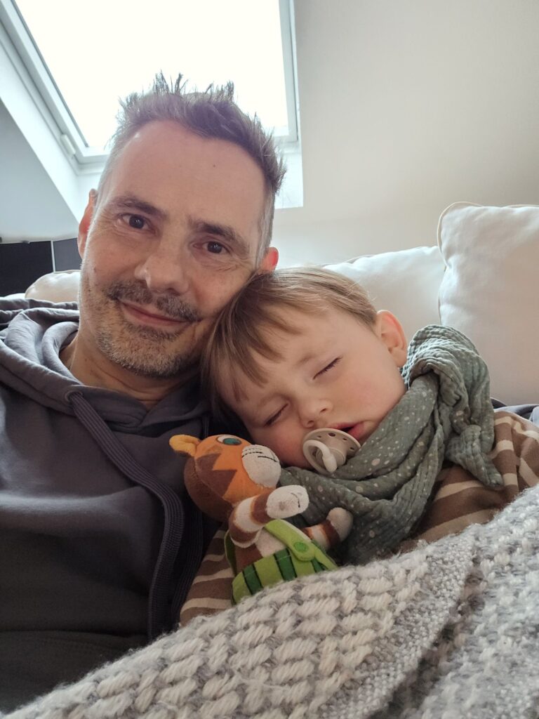 Mika ist in den 2min auf der Fahrt eingeschlafen. So richtig wach geworden ist er auch beim Aussteigen und Reingehen nicht geworden und hat auf dem Sofa dann erstmal eine Stunde geschlafen.