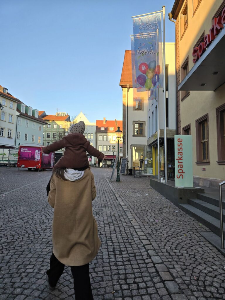 Mika und Papa haben zusammen den Tag begonnen. Mama konnte ein bisschen länger schlafen. Nach dem Besuch beim Bäcker – Mika hat einen Berliner bestellt, statt des obligatorischen Quarkbällchens. Hihi… und hat dann auch noch ein Quarkbällchen geschenkt bekommen. Bingpott.