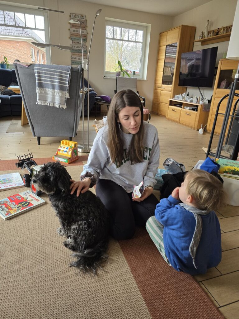 Der Tag fing mit ein bisschen Spielzeit an und dann sind Mika, Mama und Papa zum Brötchenholen in die Stadt gefahren.