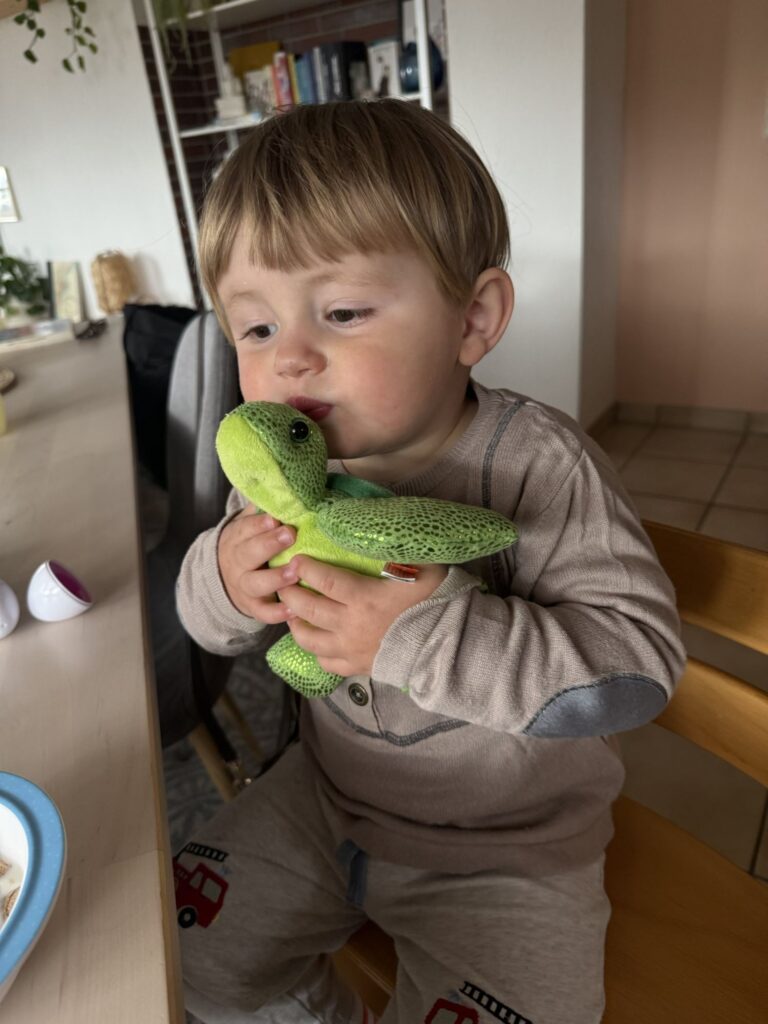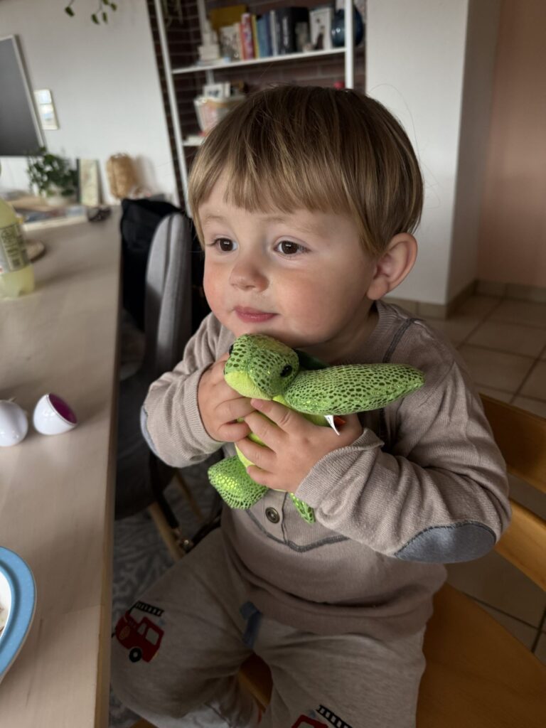 So hat Mika auch bis 7.15 Uhr geschlafen. Mama hat er erst um 5.30 Uhr zu sich geholt.
