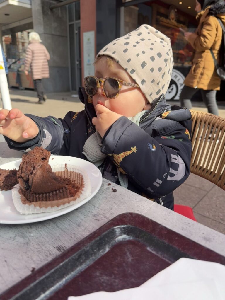 Die beiden sind dann in die Stadt gefahren und haben ein bisschen eingekauft. Und… das Wichtigste… einen Kuchen bzw. Schoko Muffin gegessen.