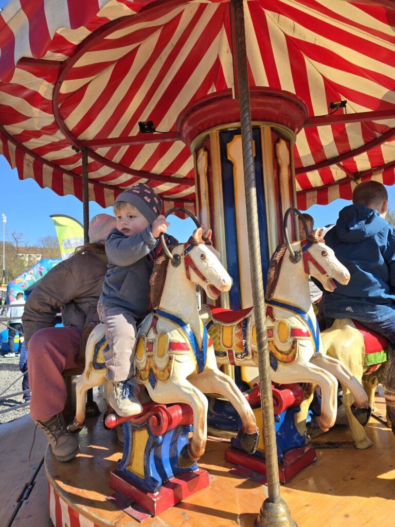 Es war ein kalter Sonntag, an dem Mika nachmittags ganz verzückt ein Karussell auf dem Food Market gesehen hat. Mama, Mika und Papa sind nach der Stärkung noch zum Fußballplatz gegangen und haben ein bisschen den Ball gekickt.
