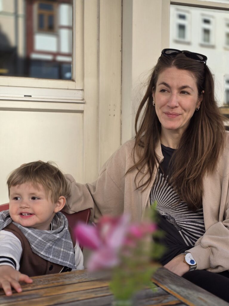 Papa und Mika sind heute zur üblichen Zeit von 6.00 Uhr aufgestanden. Nach ein bisschen Spielzeit haben sich die beiden dann fertiggemacht und sind zum Bäcker gegangen. Mika im Kinderwagen, das Laufrad war auf Wunsch auch dabei, wurde aber nicht gebraucht. Auf dem Rückweg wurde es Mika zu kalt und die Decke, die aus dem Winter immer noch unten im Kinderwagen lag, hatte nochmal einen Auftritt.