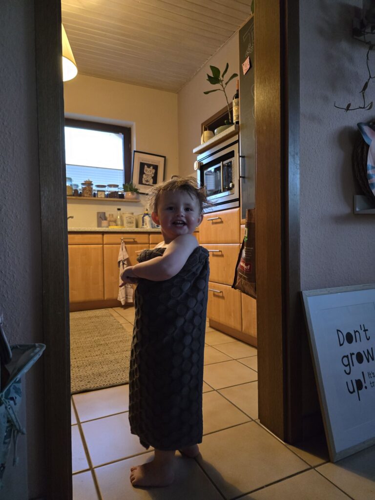 Mama ist dann noch mal los zum Einkaufen aber Mika und Papa haben lieber gebadet. Dann ging es ganz kuschelig mit Mama ins Bett.