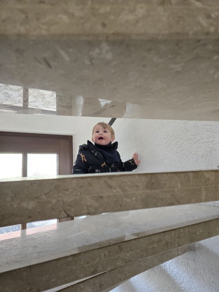 Nach einen bisschen Spielzeit, dem ersten Frühstück und Ball spielen, haben Mika und Papa eine Fahrradtour gemacht und sind auf dem Rückweg noch zum Bäcker gefahren.