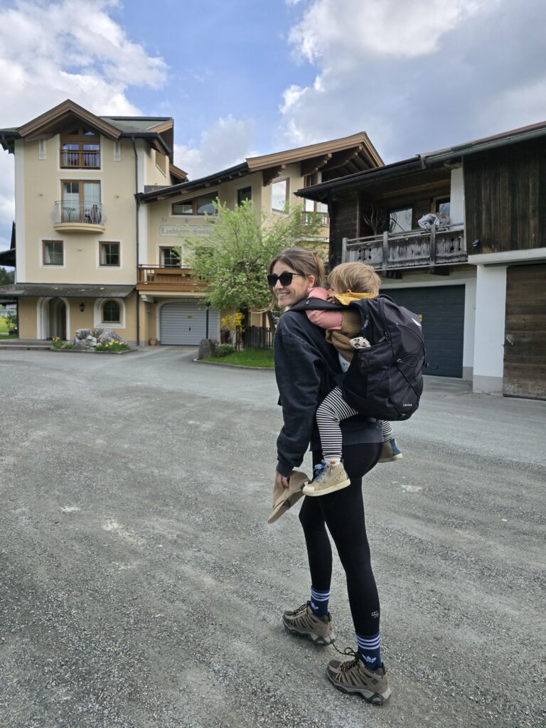 Nach dem Mittagsschlaf, den Papa mitgemacht hat, sind alle zu einer Wanderung aufgebrochen. Mit Kinderwagen, Laufrad und Rucksack. Mika ist die meiste Zeit aber im Wagen gefahren. Immer mal ein bisschen nölig und wie ein Schluck Wasser in der Kurve.