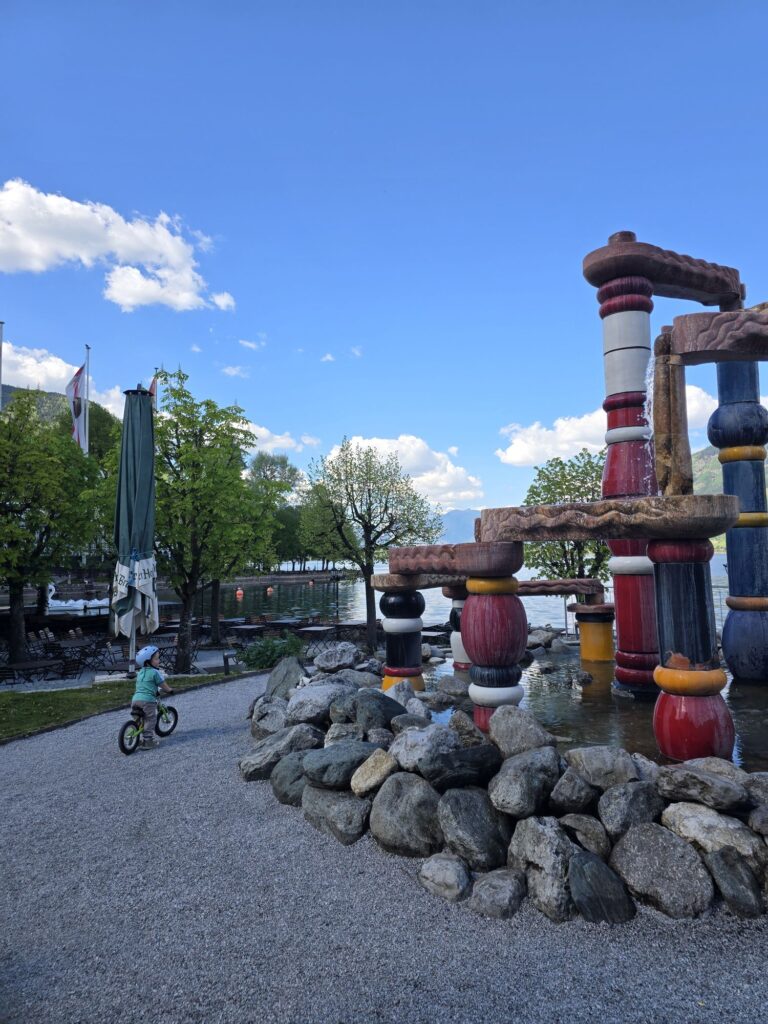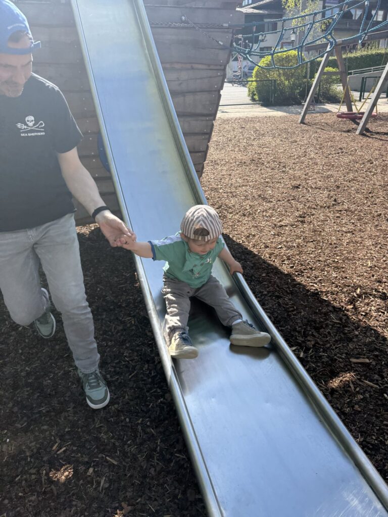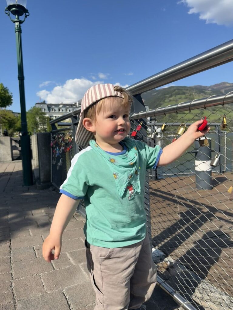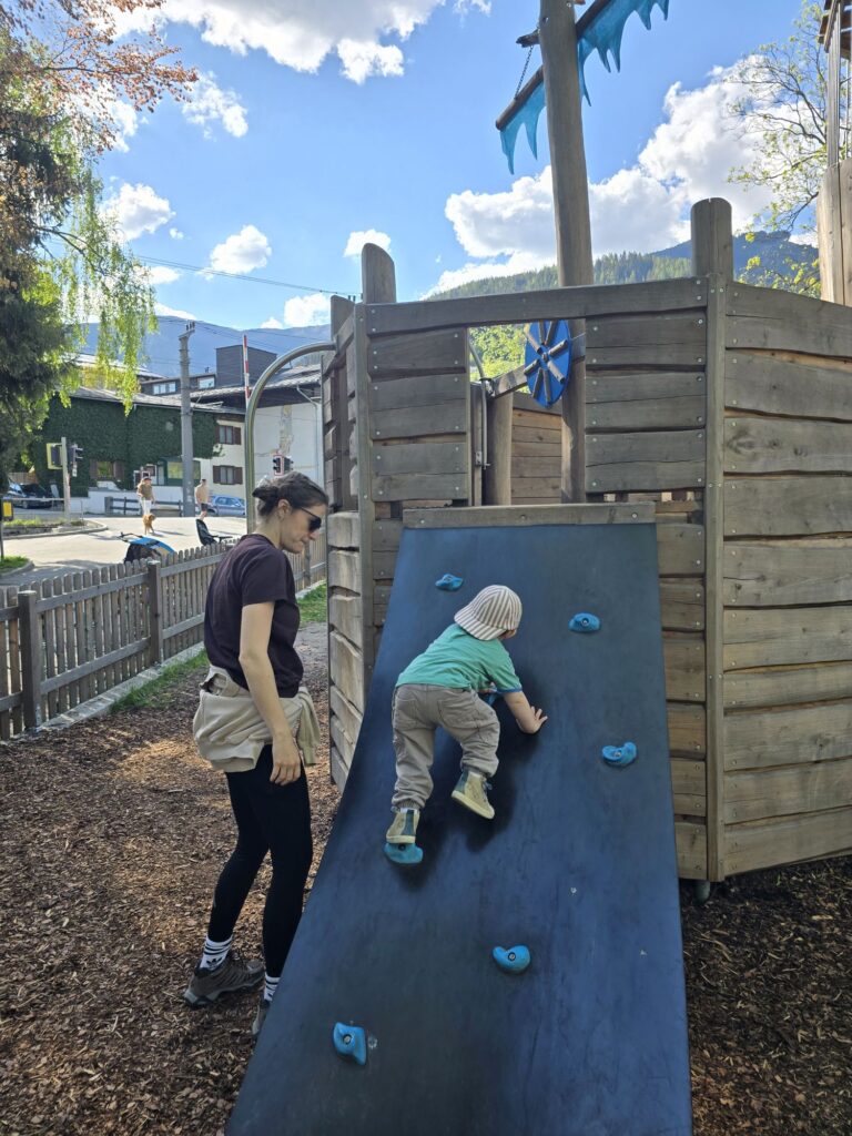 Nach dem Mittagsschlaf sind Mama, Mika und Papa nach Zell am See gefahren. Wow, was für eine große Stadt für die Verhältnisse in Tirol. Am See gab es einen schönen Spielplatz und Mika ist abwechselnd Laufrad und im Kinderwagen gefahren.