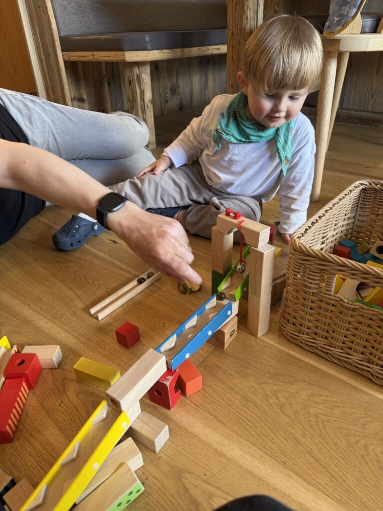 Papa und Mika sind dann aufgestanden und haben dies und das hier und da gespielt. Um halb neun war dann die Energie bei beiden ganz schwach und die Spielscheune musste für eine Fütterung verlassen werden.