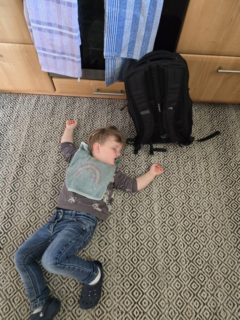 Puh, Mika war schon um 5.00 Uhr wach 🥱. Um viertel vor sechs sind Mika und Papa dann aufgestanden. Der Morgen war ganz beschäftigt mit Hausarbeit und Mika hat ganz lieb vor sich hingespielt.