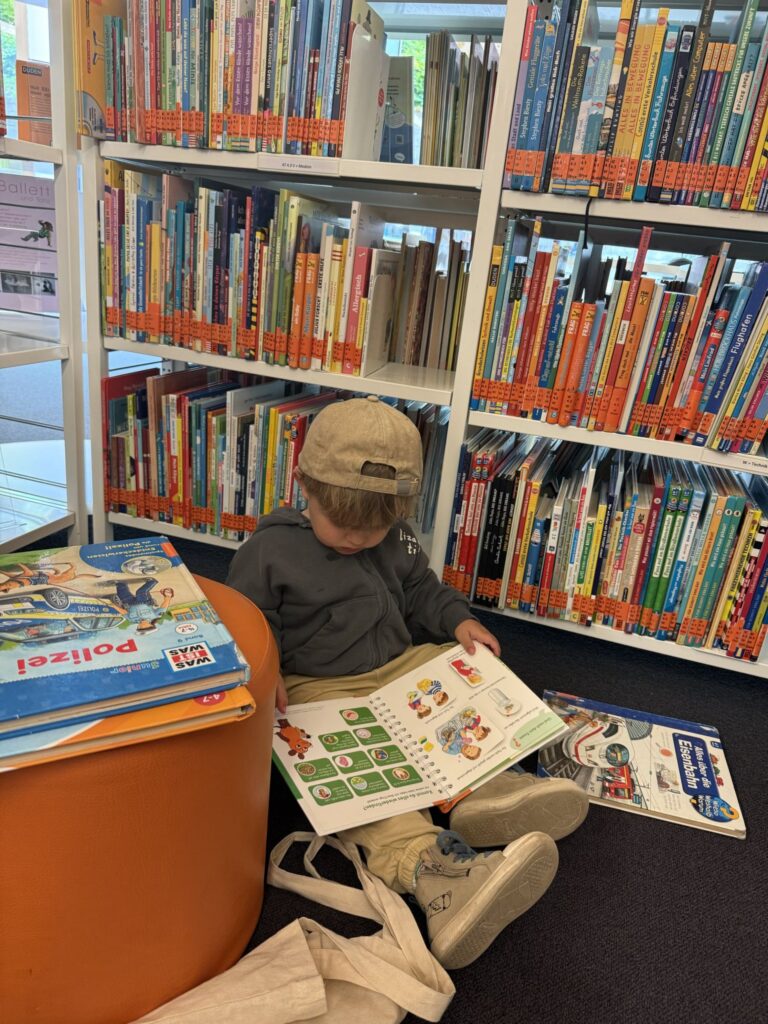 Nachmittags sind Mika und Mama mit dem Fahrrad in die Stadt gefahren und haben die Stadtbücherei besucht. Ein paar Bücher wollten wieder nach Hause und ein paar andere sind mit Mika gekommen.