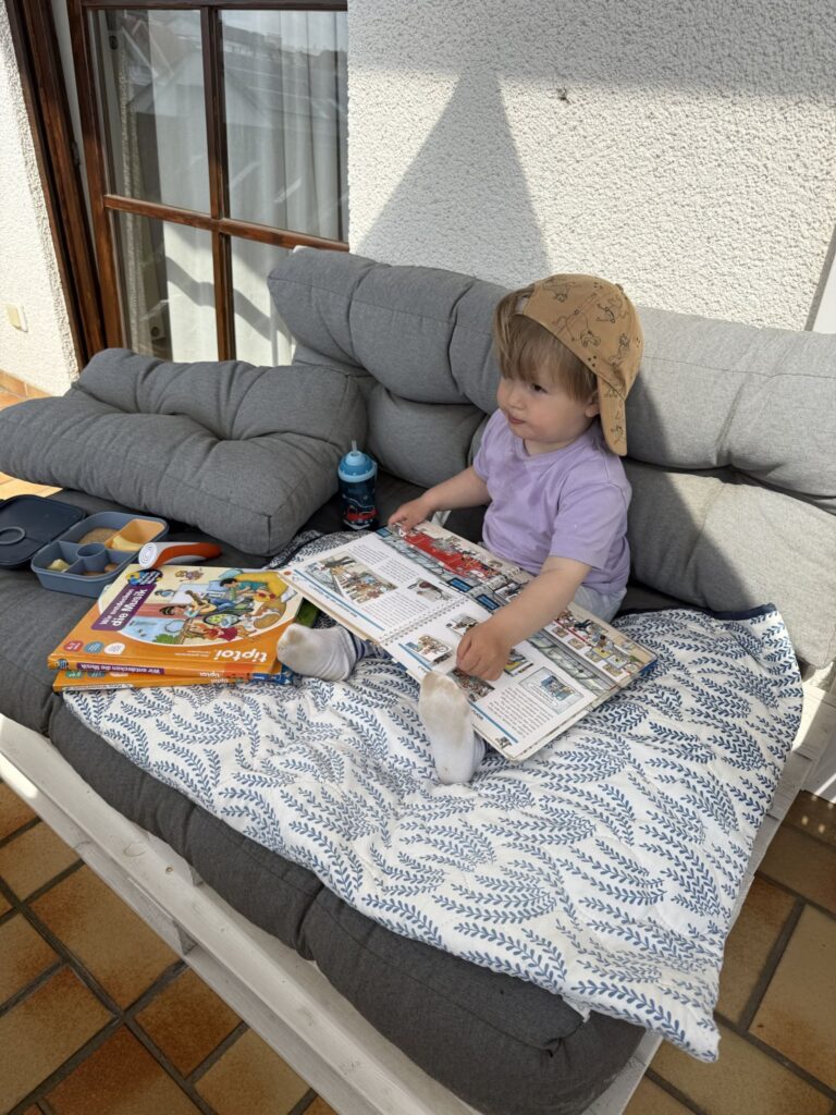 Auch nachmittags war große, gute Laune mit am Start. Mika und Mama haben sich erst einen schönen Nachmittag im Garten und später auf dem Balkon gemacht. Mika hat ganz viel gespielt und viele Bücher angeguckt.