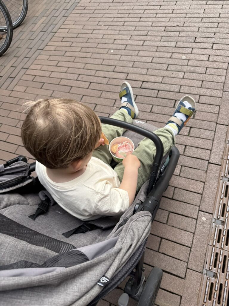 Danach sind alle in die Stadt und haben sich die Zeit vertrieben. Mika hat im Kinderwagen einen Mittagsschlaf 2go gemacht. Um halb vier war dann die Krimi Stadtführung an der Reihe. Mika ist ganz viel Laufrad gefahren.