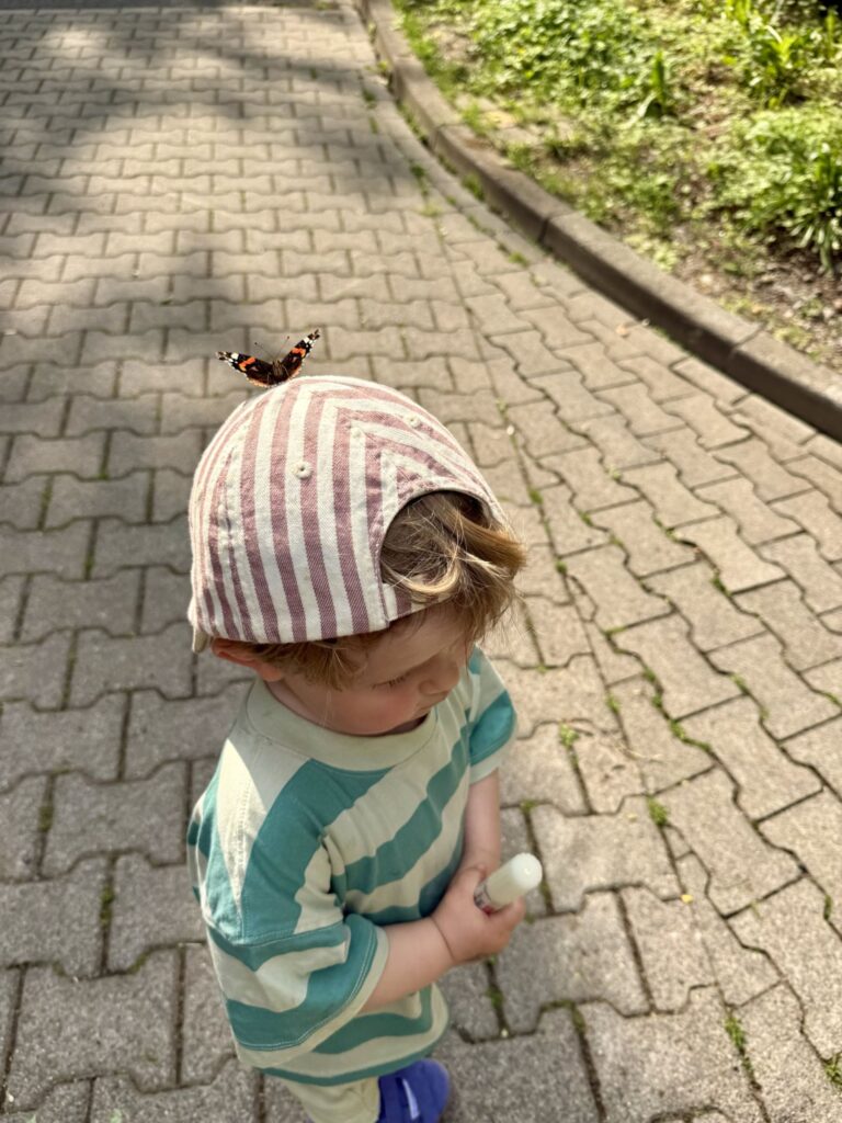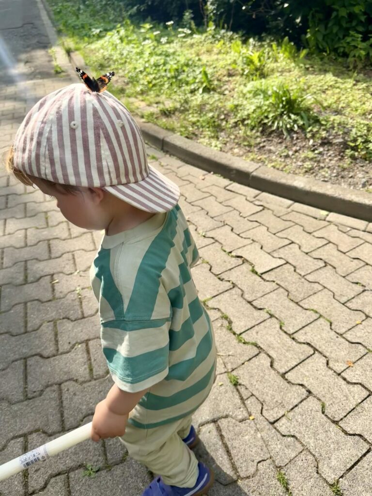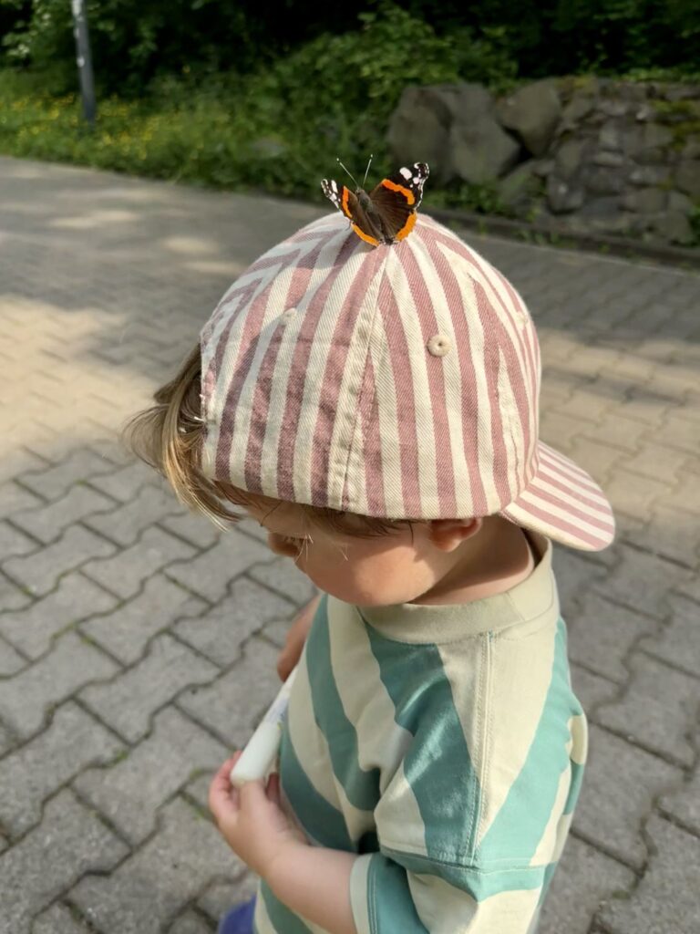 In der Stadt war es für Mika auch schön und er ist den ganzen Weg nach Hause gelaufen. Das war eine schöne Entdeckertour. Und der Schmetterling war so schön anzusehen. Vielleicht hatte der Schmetterling Mika auch ein bisschen liebgewonnen.
