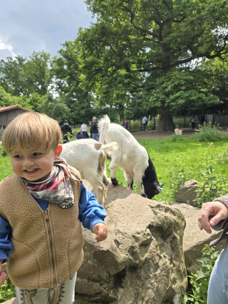 Im Tierpark war es sehr schön. Im Wechsel zwischen laufen, im Kinderwagen und Laufrad fahren hat Mika den ganzen Tierpark erlebt. Am besten war es bei den Ziegen, die man sogar kuscheln konnte.