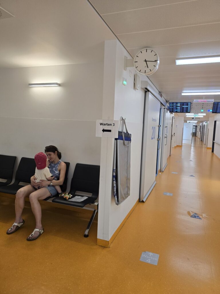 Nach dem Mittagsschlaf ging es mit dem Fahrrad in die Stadt, um fĂŒr Papa kurze einzukaufen. Das lief auch ganz gut, bis Mika beim Rolltreppe fahren mit Papa ein UnglĂŒck hatte und ein StĂŒck die Treppe runtergefallen ist. Oh je, das war wirklich schlimm. Neben blauen Flecken hat Mika sich einen Schnitt zwischen Nase und Mund zugezogen, der in der Notaufnahme des Krankenhauses sogar mit einem Stich genĂ€ht werden musste – ohne BetĂ€ubung. Mika war so tapfer, hatte aber auch verstĂ€ndlicherweise Angst.