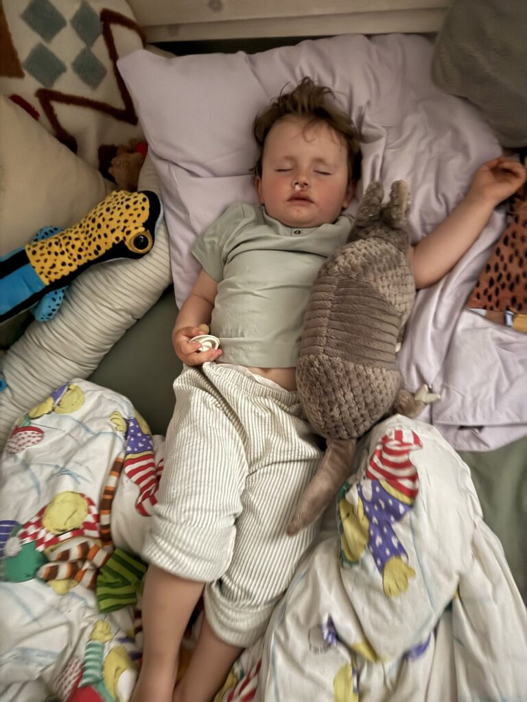 Mika ist heute um sechs Uhr zu Mama und Papa ins Bett gekommen… und ist noch mal volle Kanne eingeschlafen. Bis fast halb acht đ.