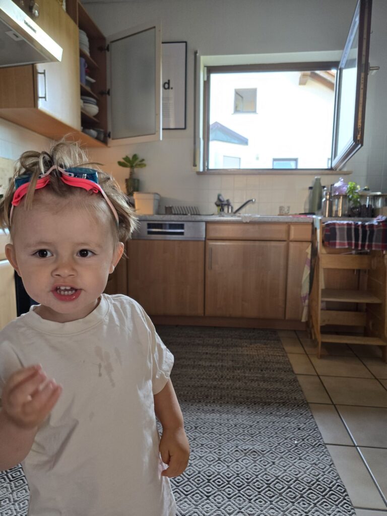 Mama hat Mika in den Kindergarten gebracht. Es ist immer sommerlicher und morgens schon ganz warm… 🥵.
