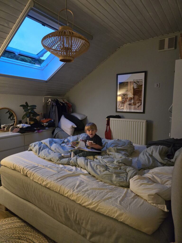 Heute waren Mika und Papa früher dran und haben sich ganz entspannt fertiggemacht. Es war für Mika sogar noch genug Zeit, um vor dem Kindergarten gemütlich auf dem Bett zu lesen.