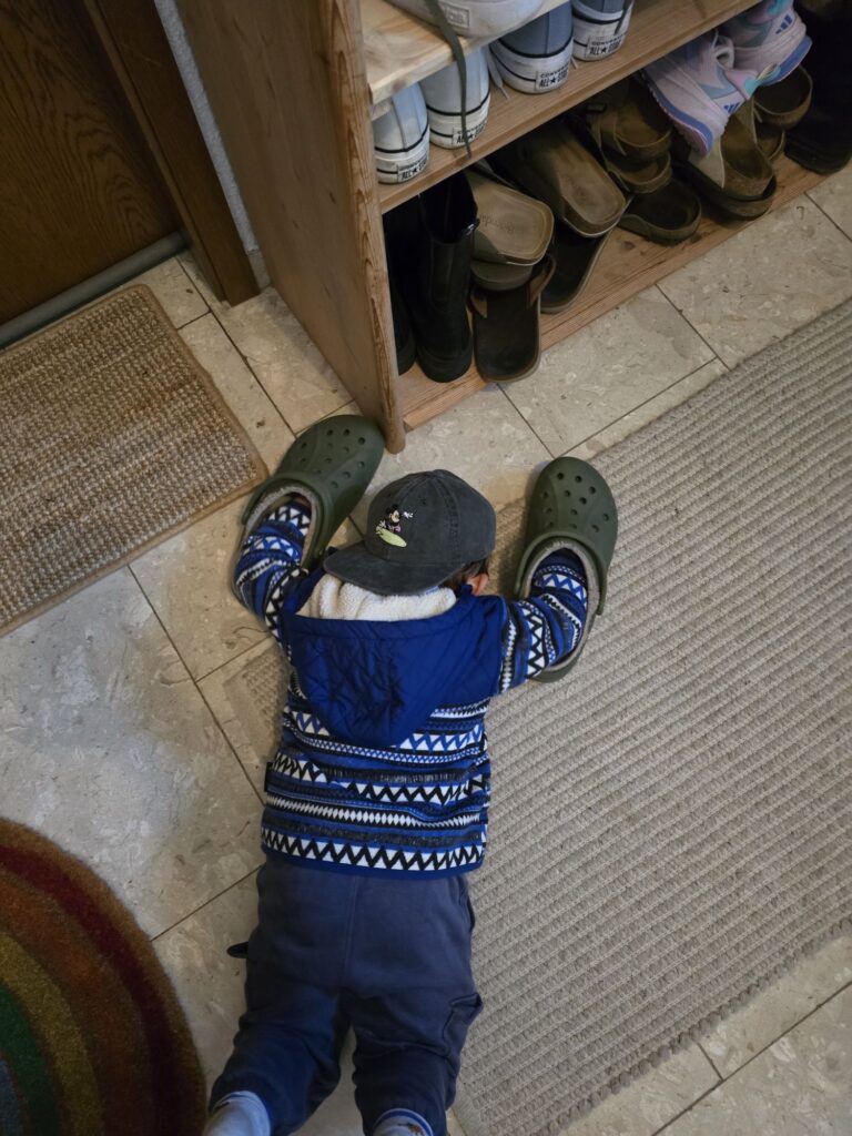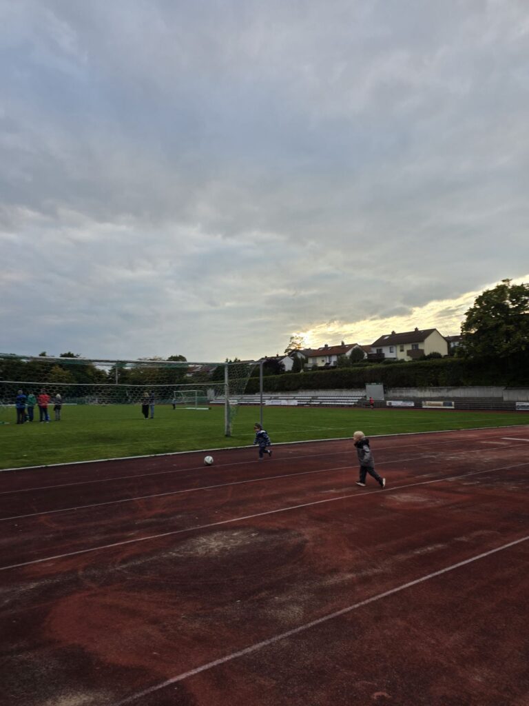 Papa hat Mika in den Kindergarten geradelt und wieder abgeholt. Nachmittags war drinnen Spielzeit und zum Feierabend sind Mika und Papa noch auf den Fußballplatz gegangen.