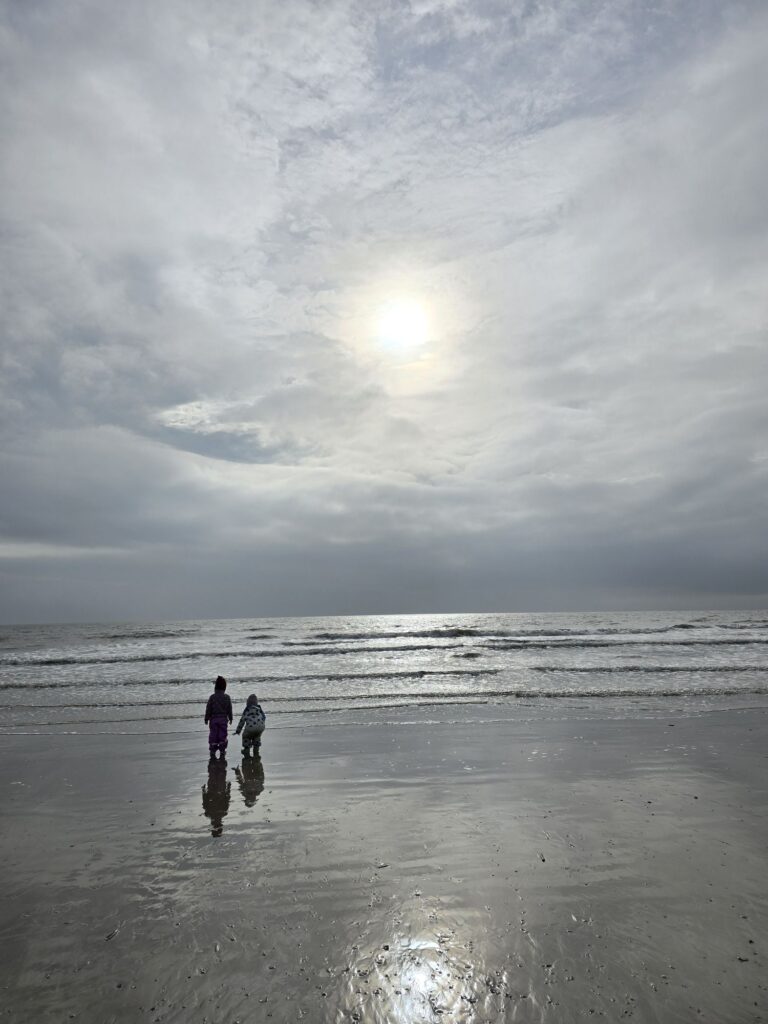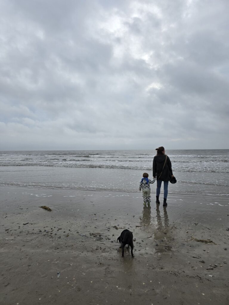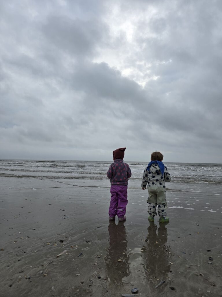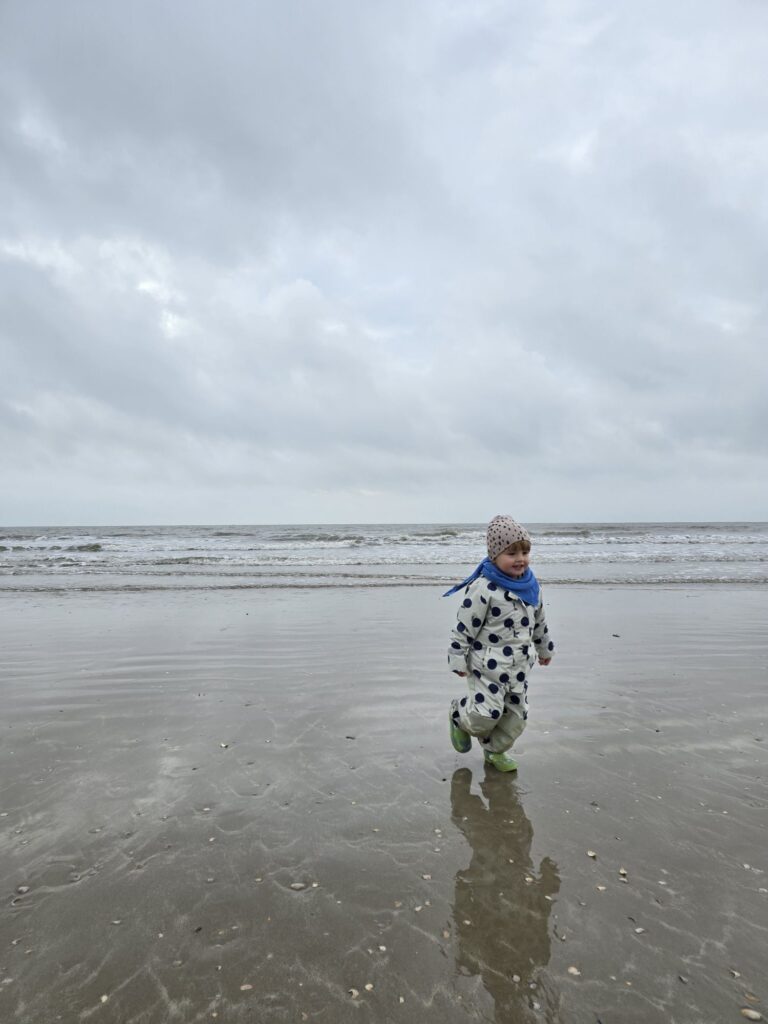Nach dem Mittagsschlaf ging es dann mit allen wieder zum Strand. Diesmal mit Gummistiefeln und Matschhose. Das war ein großer Spaß und alles war ganz schön und lustig.