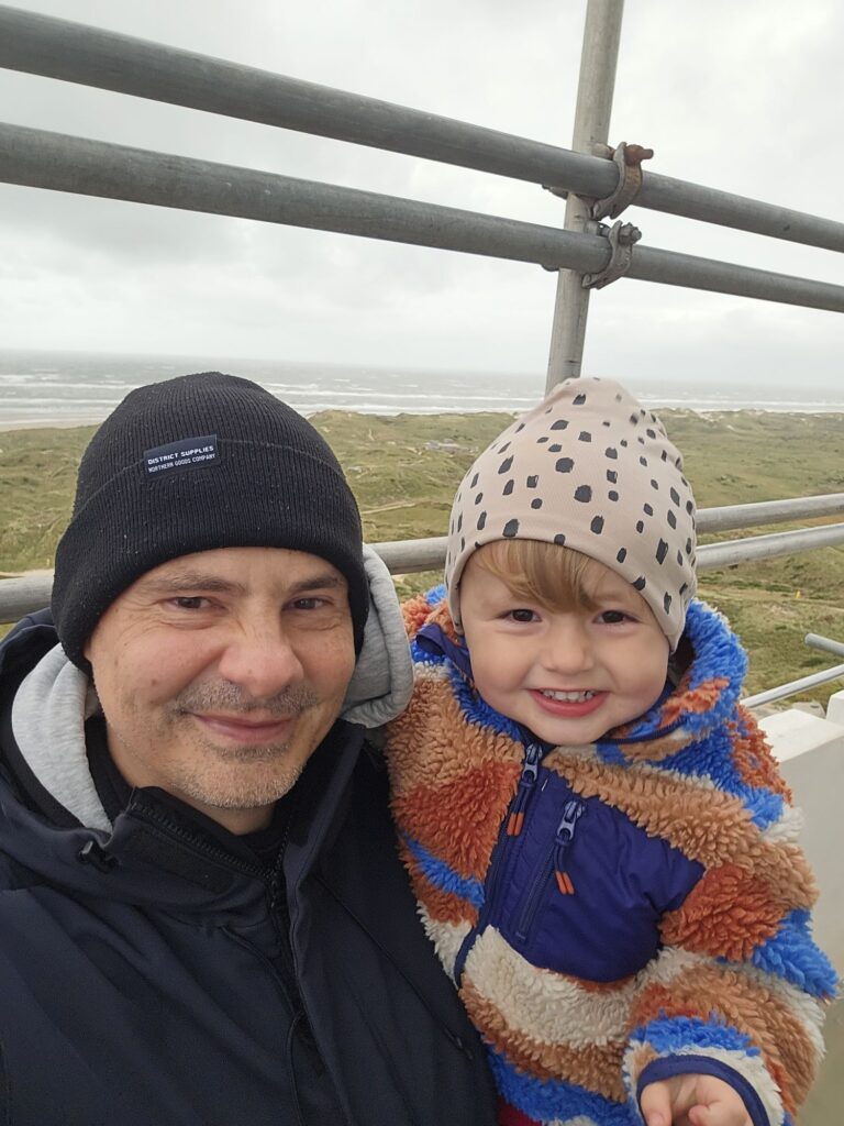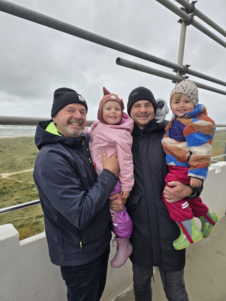 Nach dem Frühstück sind alle zusammen zum Strand und am Strand zum Leuchtturm gegangen. Es war ganz windig und auf dem Leuchtturm noch viel mehr. Den Leuchtturm ist Mika zur Hälfte selbst hochgestiefelt. Von oben gab es einen fantastischen Blick auf die Nordsee und über Blavand.