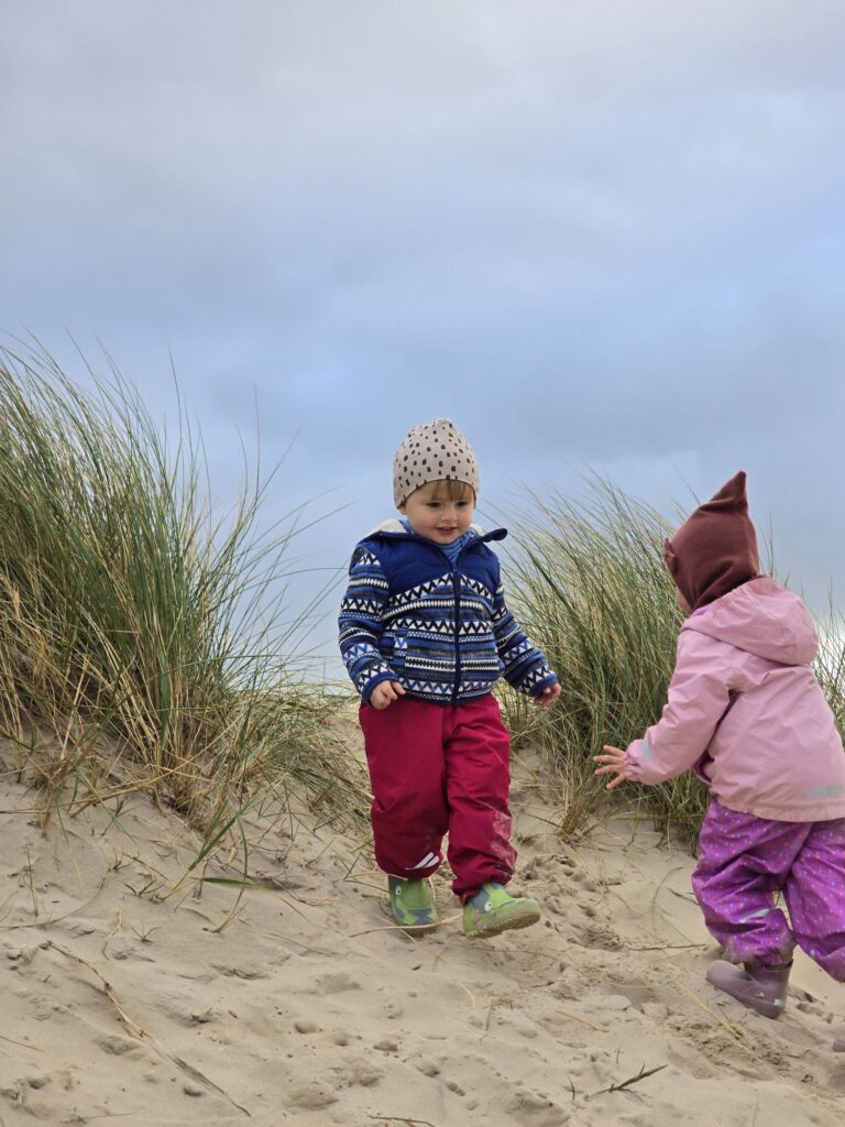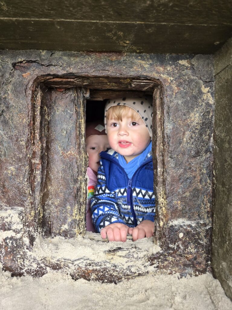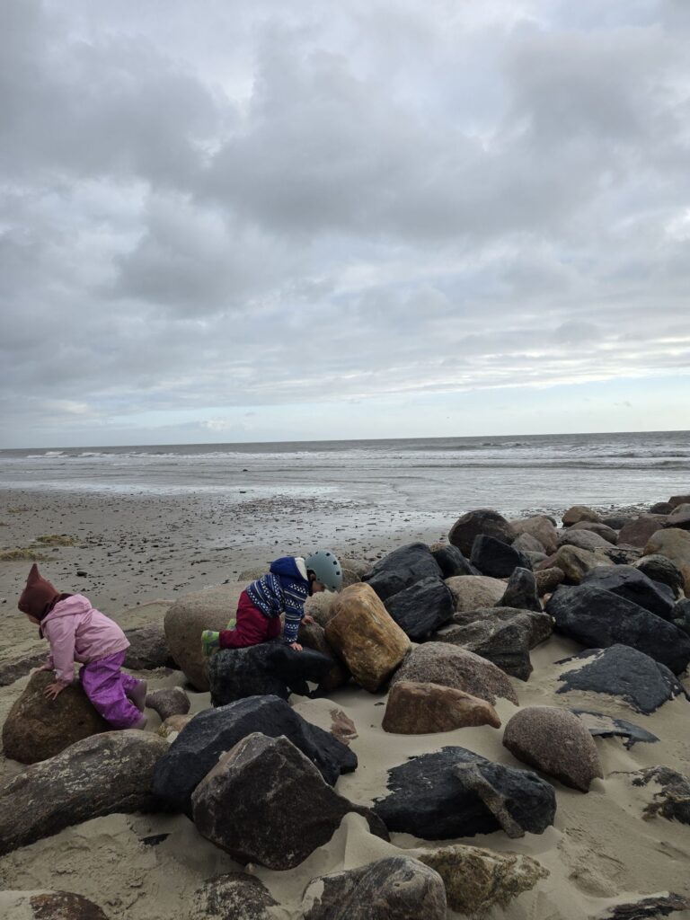 Danach ging es mit Jörn, Papa, Thilda und Enno an den Strand. Krebse haben wir leider nicht gefunden, aber dafür gab es an den Steinen der Mole und rund um einen Bunker viel zu spielen.