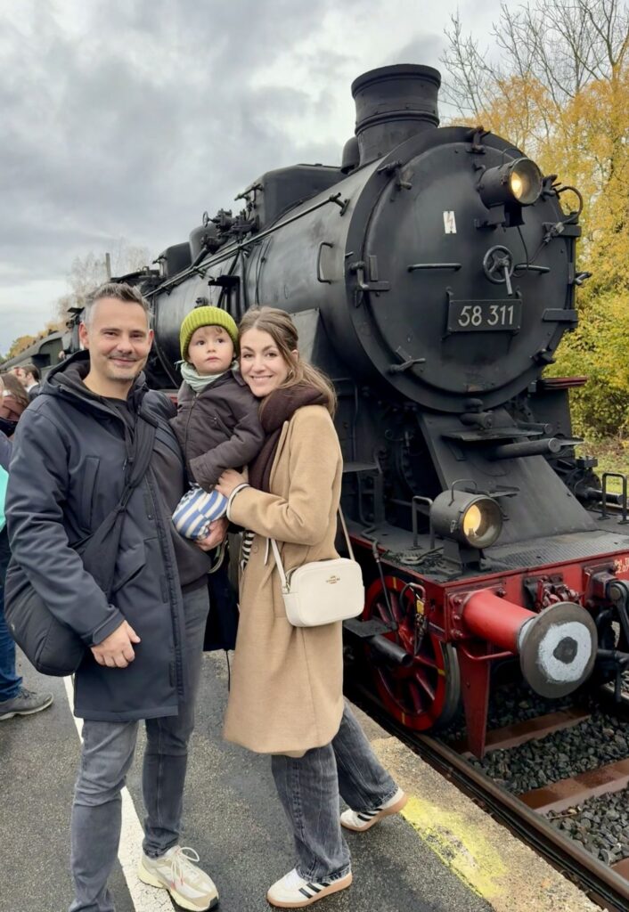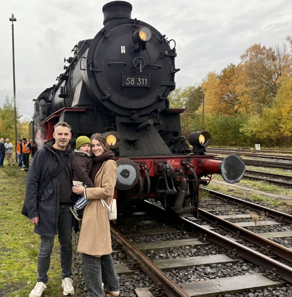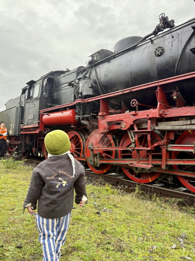 Morgens konnte Mika noch ein wenig mit Oma spielen, aber um 9.00 Uhr war es Zeit, um Oma zum Bahnhof zu bringen. Mika ist natürlich mitgefahren. Und was war das? Die große, stolze Dampflokomotive stand schon im Bahnhof und Mika konnte sie schon sehen.