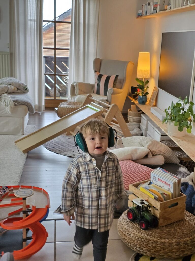 Nach dem Mittagsschlaf sind Mika und Papa noch mal zu Rewe gefahren und haben für Plätzchen eingekauft. Oma Anke hat zwar erst gestern einen großen Karton Plätzchen geschickt, aber der wird nicht lange reichen. Bei Tedi durfte Mika sich noch ein Auto aussuchen. Das musste dann aber auf einmal schnell gehen… Mika musste pinkeln. Also schnell nach Hause. Da angekommen hatte Mika das aber ein bisschen vergessen. Nötig war es aber trotzdem allemal.