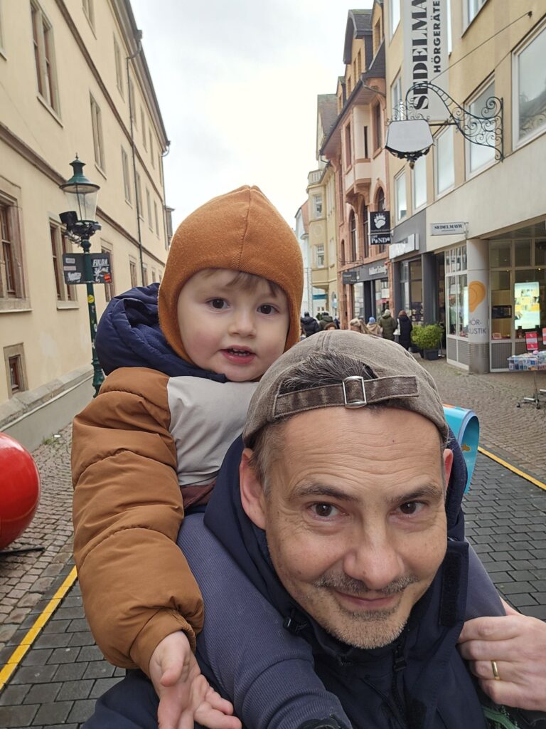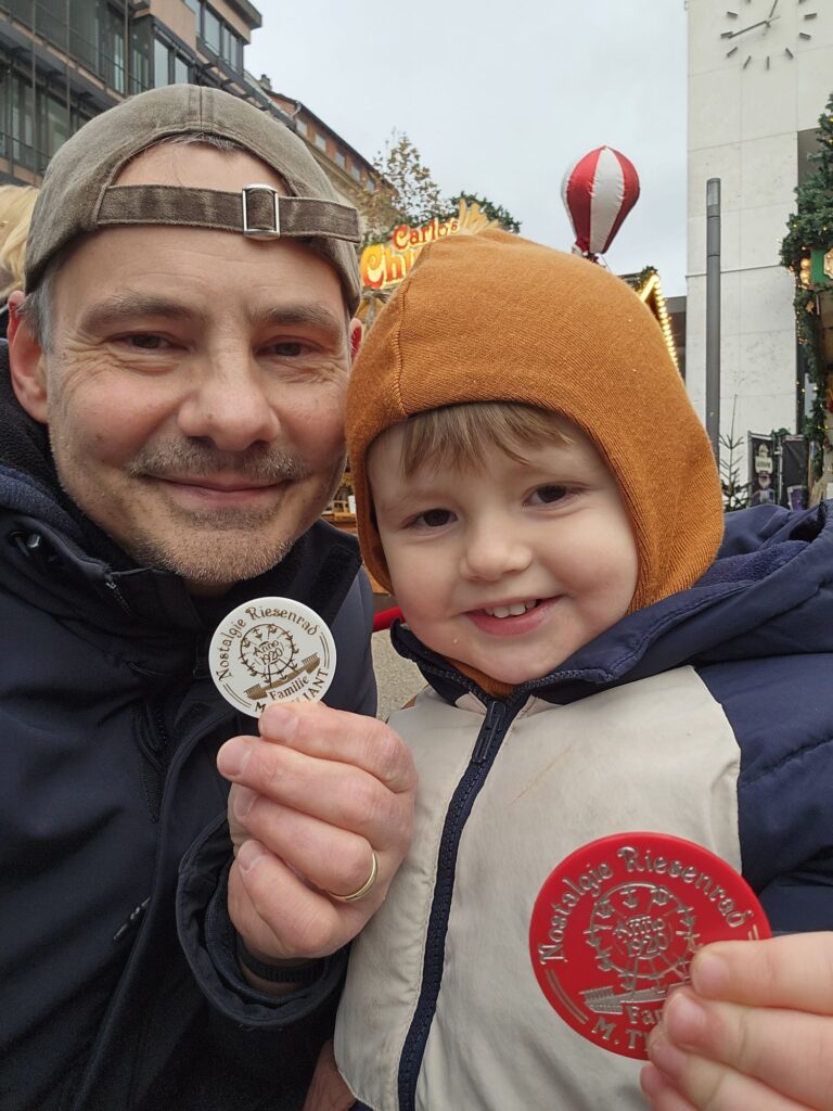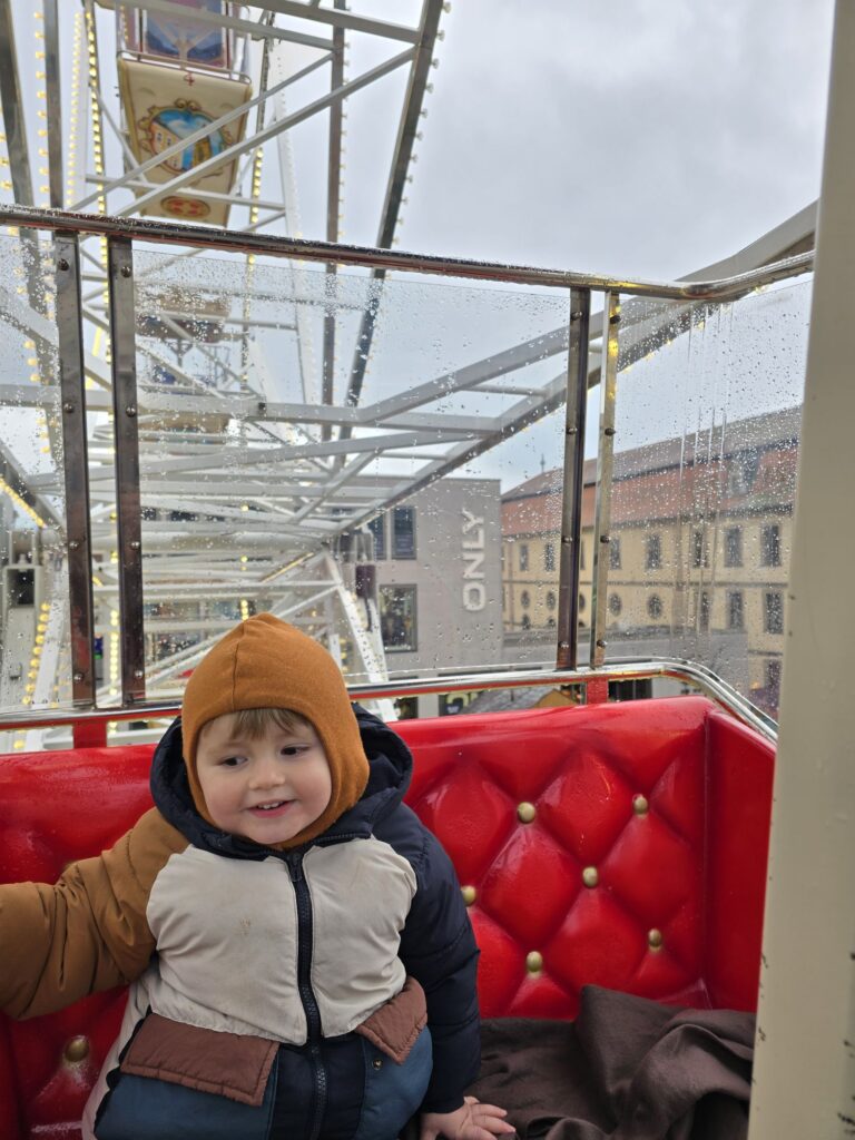Dann ging es mit dem Fahrrad in die Stadt. Mika und Papa sind auf dem Weihnachtsmarkt Riesenrad gefahren. Das war ein kleines Abenteuer. Mika hat es voll gut gefallen. Danach sind die beiden über den Weihnachtsmarkt, zu Karstadt und wieder über den Weihnachtsmarkt. Dann ging es wieder nach Hause.