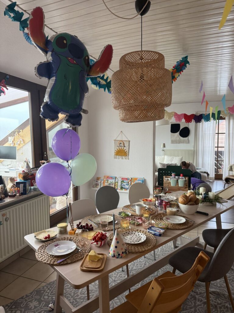 Hui, wie sieht es denn im Wohnzimmer aus 😃🎉. Mika war ganz verzückt und ganz geduldig. Papa und er sind dann noch Brötchen holen gefahren. Dann war Bescherung und Mika hat sich über seine Geschenke gefreut und war wr aus dem Häuschen. Mika hat ein ferngesteuertes Auto, einen Arzrkoffer für Tiere, ein Buch und die Auto-Rennbahn bekommen. Später gab es auch noch Geschenke von den Geburtstagsgästen Leo, Vinnie und Flora. Hannes und Tjark haben Mika aus dem HSV Stadion ein Hermann Stofftier, das Maskottchen mitgebracht. Später kam noch Nele, und es gab noch ein Geschenk. Mika hat sich sehr gefreut.