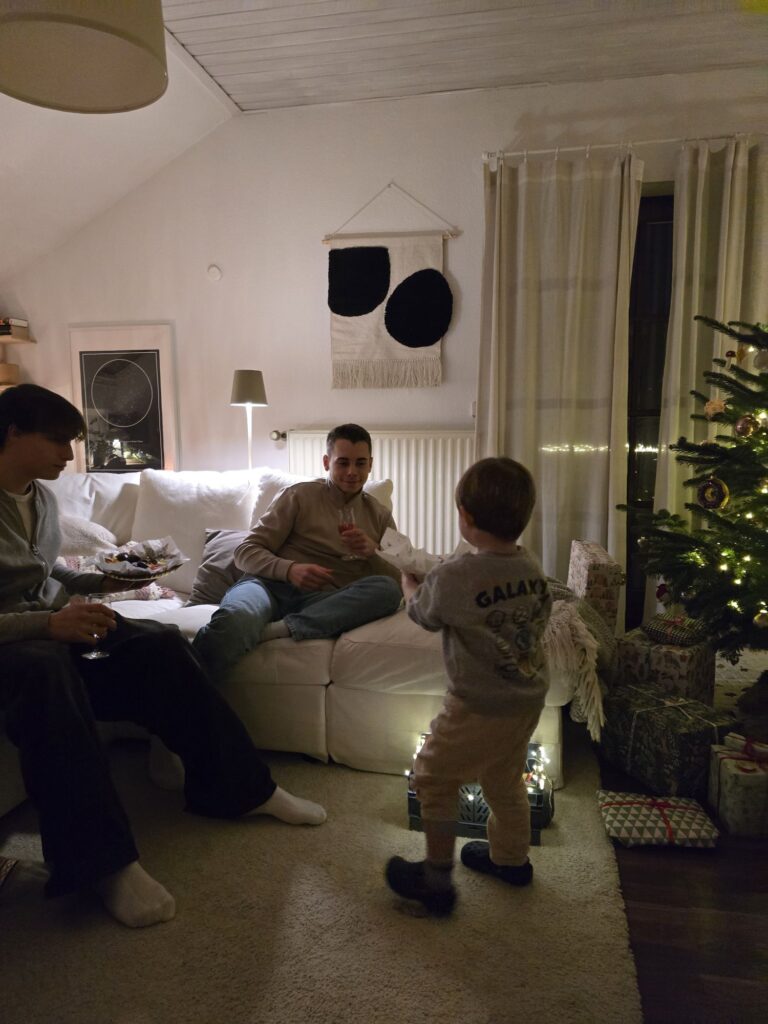 Mika hat bis halb acht geschlafen. Der Heiligen Abend war ganz anstrengend.