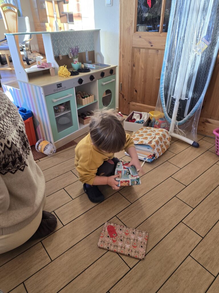 Mika ist mit Mama zusammen aufgestanden. Thilda hat noch ein bisschen länger geschlafen. Also gab es schon mal ein Toast für Mika zum ersten Frühstück.