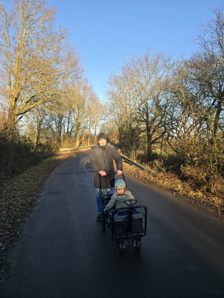 Nachmittags ist Mika auf seinem Laufrad noch mit Jörn und Papa zur Windpark-Baustelle gefahren. Es war wunderschönes, kaltes Winterwetter.