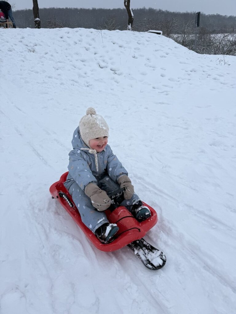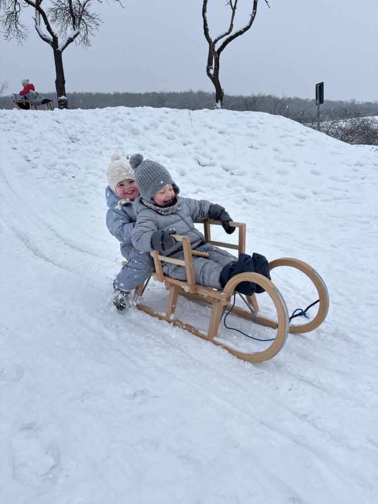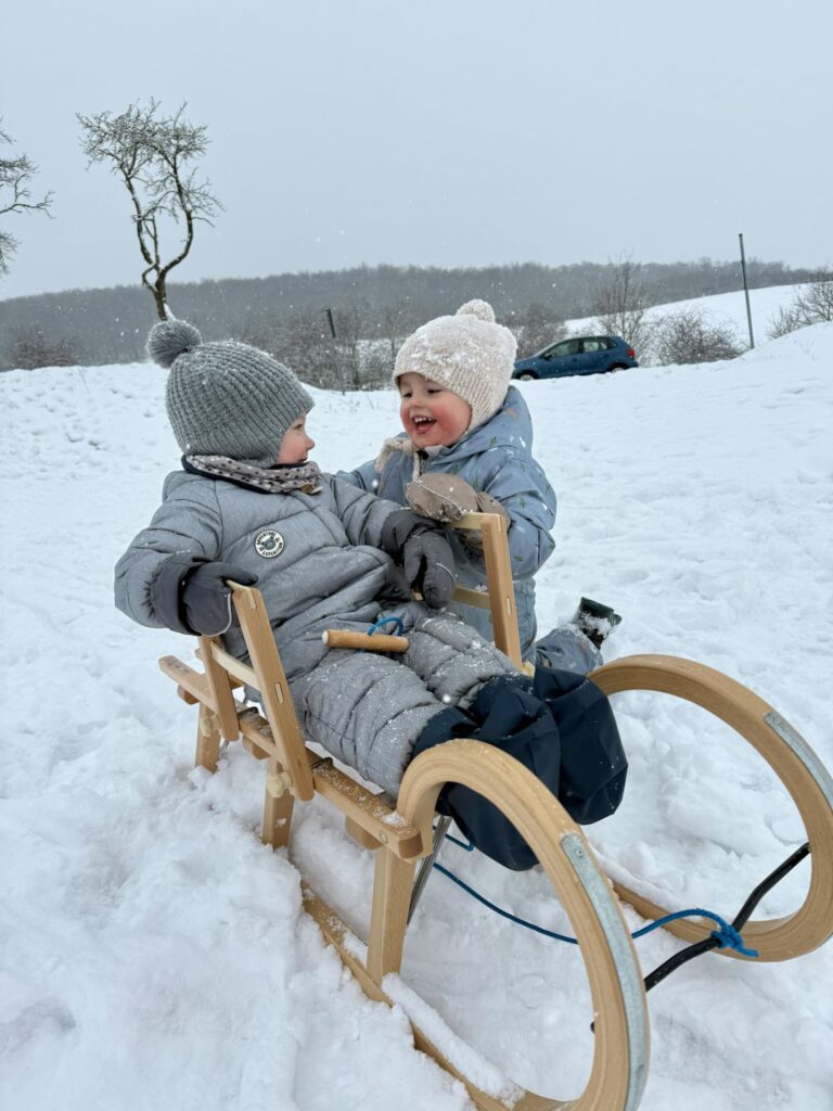 Nach dem Kindergarten sind Mika und Mama zu Leo gefahren und zusammen dann gleich zum Schlittenberg. Die beiden hatten so einen großen Spaß.