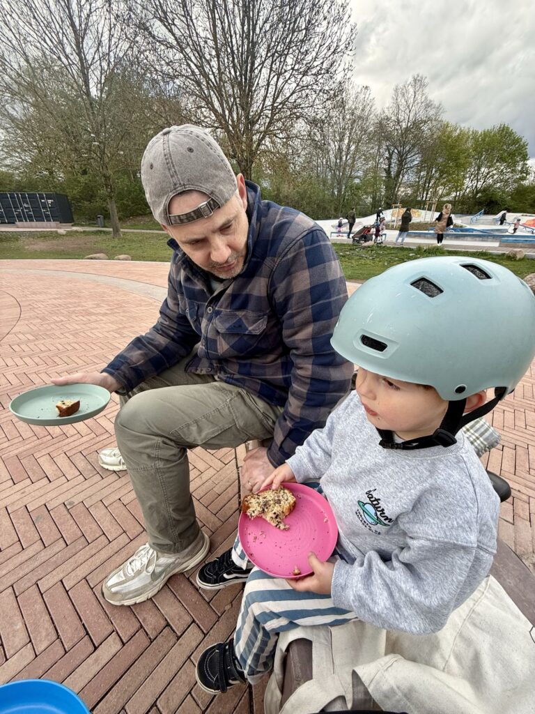 Nach dem Mittagsschlaf, der sehr nötig war, sind Mika,. Mama und Papa dann zum Feuerwehrmuseum gefahren. Mama ist ein paar Runde gejoggt und Mika ist auf dem Skaterplatz ordentlich rumgedüst. Zwischendurch gab es Bananenbrot zur Stärkung.