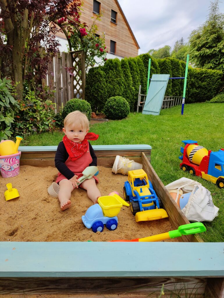 Mit vollem Risiko war dann doch draußen im Garten alles für die Gäste hergerichtet. Der Wetterbericht war sich nicht einig, ob es schlimmes Unwetter oder Sonnenschein geben sollte. Am Ende war das Wetter voll schön. Es hat am frühen Nachmittag 4-12 Tropfen geregnet, aber sonst war es ein Sommertag. Die Kinder haben alle voll schön gespielt.