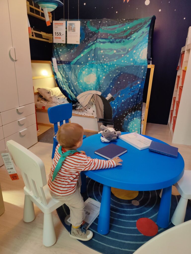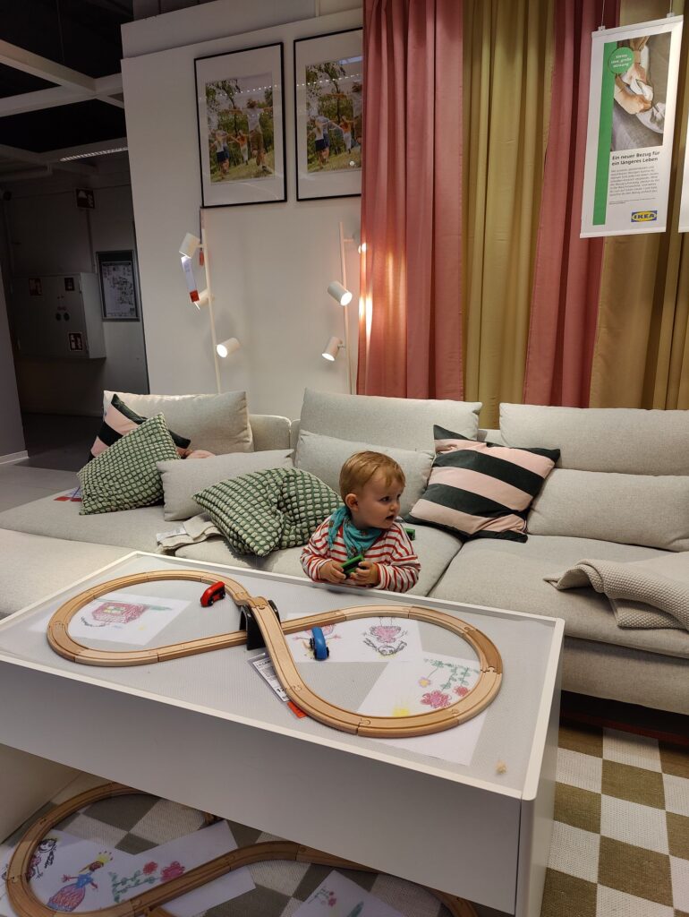 Danach sind Mama, Mika und Papa erst zum Brillengeschäft gefahren und dann mit dem Anhänger zu Ikea. Mika ist ganz doll rumgeflitzt, ein hin und wieder abgehauen und war doch ganz doll lieb (und ein bisschen verrückt zwischendurch). Danach haben wir das Sofa doch bei Sofa&Seats gekauft und waren zum Abendessen auf dem Rückweg bei McDonald’s. Mika war schon soooo müdi, hihi. Pommes gehen aber immer.