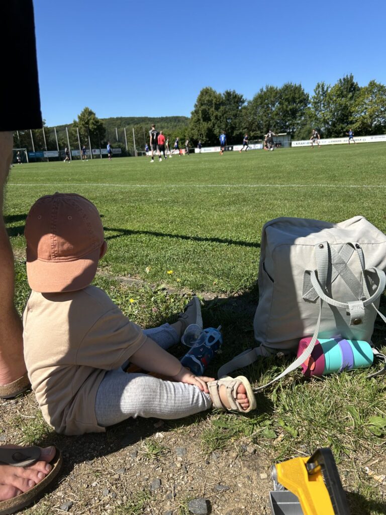Um 11.00 Uhr hat Tjarks Fußballspiel angefangen. Das Wetter war total schön sommerlich und Mika hatte großen Spaß, auch weil Oma so schön mit ihm auf dem Spielplatz gespielt hat.