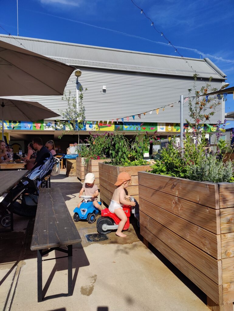 Das Frühstück gab es für Mika und Mama auf dem Wasserspielplatz in Steinau. Da haben sich die beiden mit Caro und Vinnie getroffen.